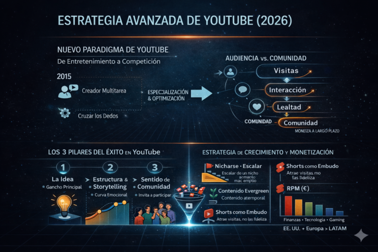 Va de entender el juego que estás jugando Durante mucho tiempo YouTube fue un sitio para entretenerse. Subías un vídeo, cruzabas los dedos y, si había suerte, el algoritmo hacía su magia.Hoy eso ya no existe. YouTube se ha convertido…